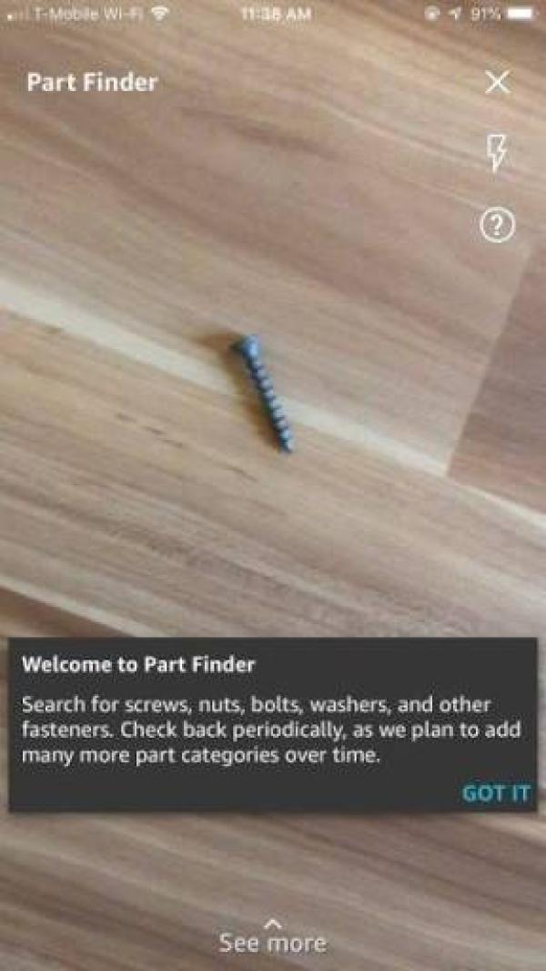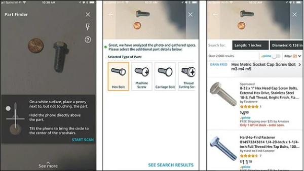 Bagian-bagian yang dibutuhkan untuk pertukangan sangat banyak macamnya, sehingga sangat sulit mencarinya terutama bagian dengan ukuran yang kecil. Amazon memberikan solusi untuk pembelinya dengan memberikan hasil pencarian sesuai foto dan karakteristik yang diberikan pembeli. Ini sangat membantu pembeli awam yang melakukan pembenahan kecil.