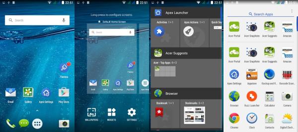 Apex launcher mengutamakan tampilan simple dan menarik, membuat launcher ini sangat ringan. Banyak fitur yang diberikan dan app drawer mengurutkan aplikasi berdasarkan banyaknya aplikasi digunakan.