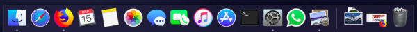 Tidak seperti pada versi sebelumnya, pada dock Mojave terbagi menjadi tiga bagian. Pada bagian kiri memperlihatkan shortcut aplikasi, bagian kanan memperlihatkan tempat sampah dan window yang di-minimize, bagian tengah fitur baru recent apps disematkan. Meski terlihat remeh namun cukup menggangu karena terkesan tidak simple dan memakan banyak bagian dock.