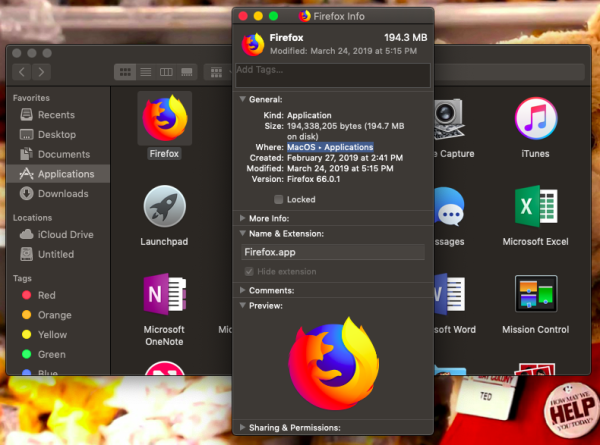 Tidak seperti di versi sebelum Mac OS Mojave, untuk mendapatkan alamat file tidak bisa dengan menyalin teks alamat file pada pilihan Get Info. Di Mac OS Mojave hasil salinan dengan cara tersebut tidak terkonversi ke bentuk alamat file.