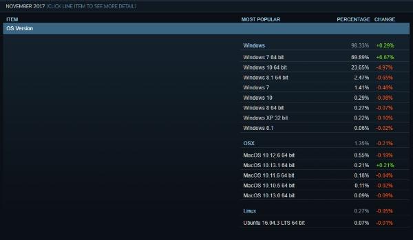 Melihat survey yang dilakukan aplikasi store Steam pada tahun 2017 saja, terlihat hanya sedikit pengguna 32-bit.